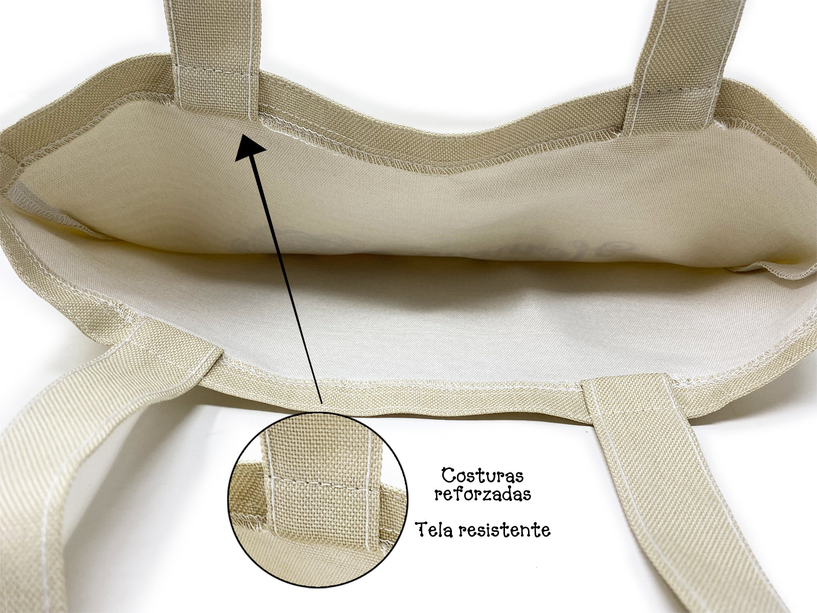 Nuestros Diseños en bolsas estan sublimados en una sola vista en canva color Beige de alta calidad para una mayor durabilidad y resistencia