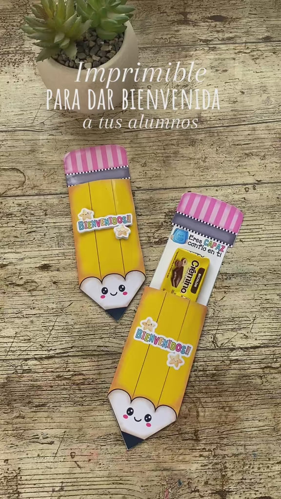 Un imprimible en forma de lápiz ✏️ tipo “porta-dulce” para armar fácilmente y regalar a tus alumnos.