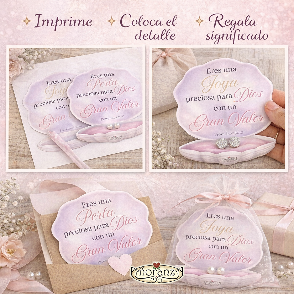 Archivo digital imprimible con mensaje inspirado en Proverbios 31:10: para regalar aretes o joyería
