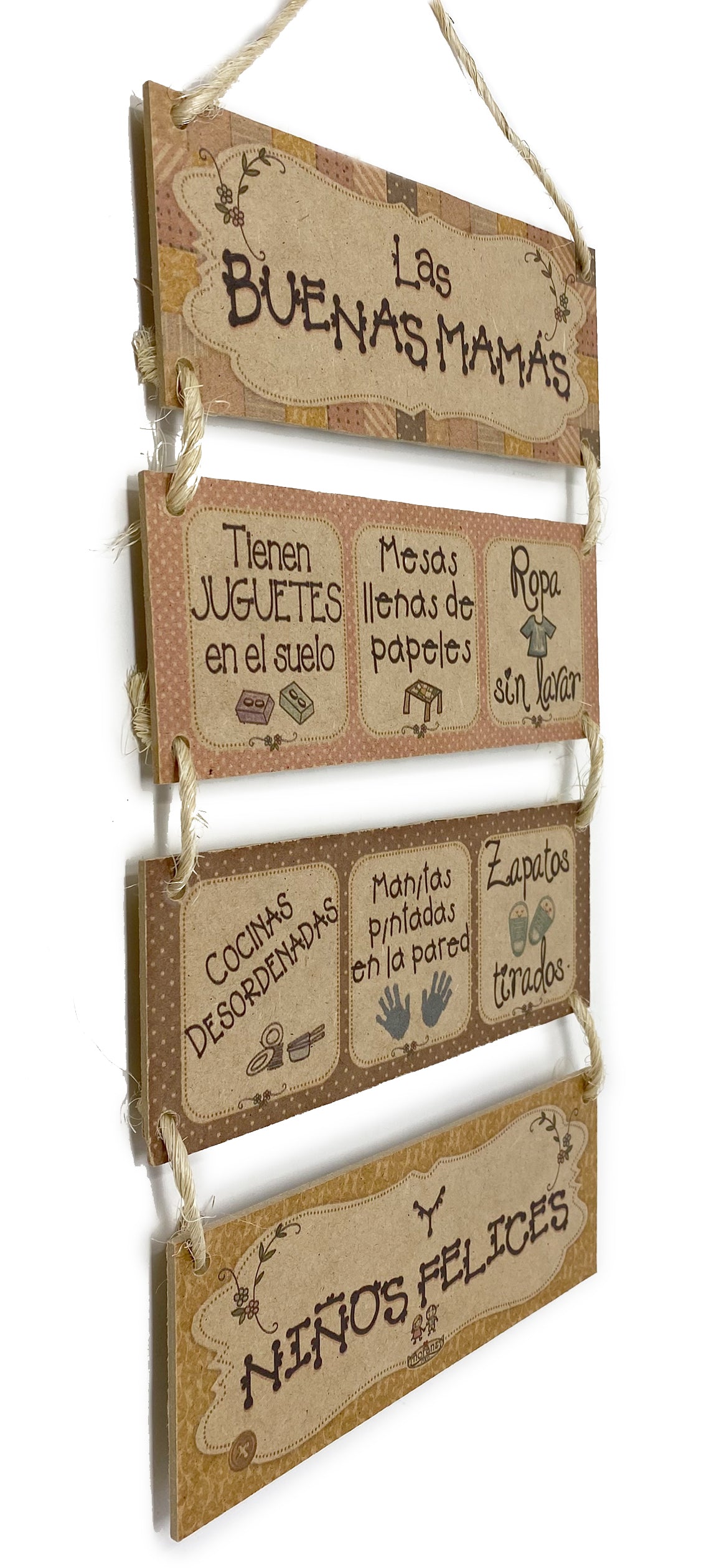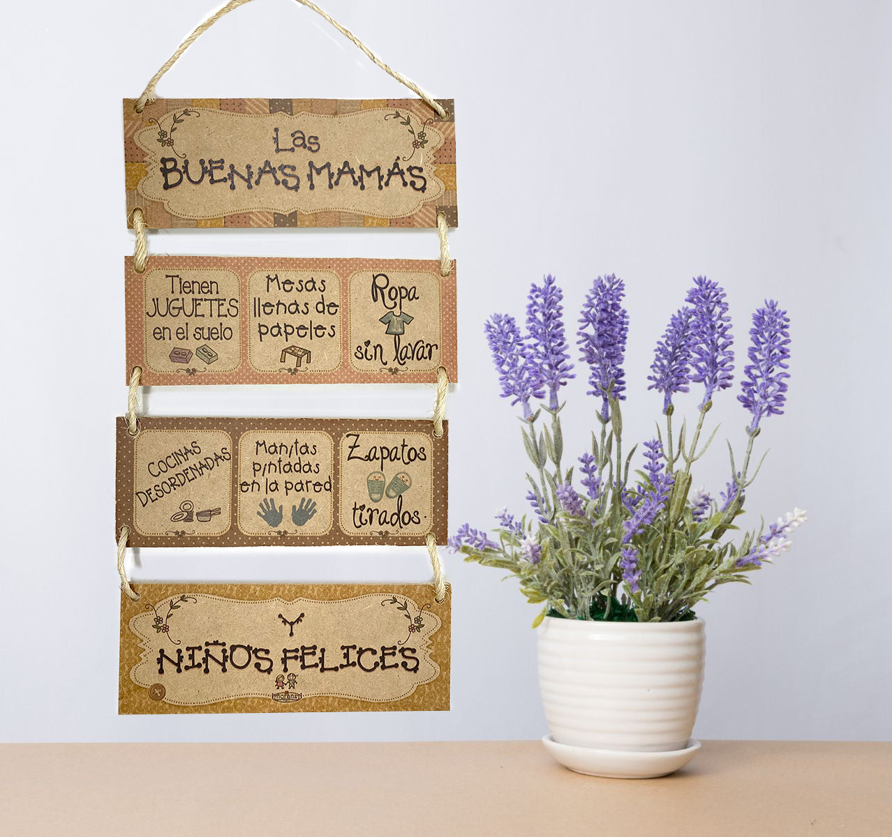 En AÑORANZA diseñamos con mucho corazón, pensando en llenarte a ti y a tu familia de mensajes positivos, todo comienza con una idea, se diseña digitalmente, se imprimen sobre la madera y pasan al área de acabados. Esperamos que este letrero decorativo le de un toque especial al hogar de mamá y una tranquilidad